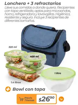 | Lonchera + 3 refractarios | TVentas | $26,90 | 25 abril 2026 | 31 mayo 2026 | |||